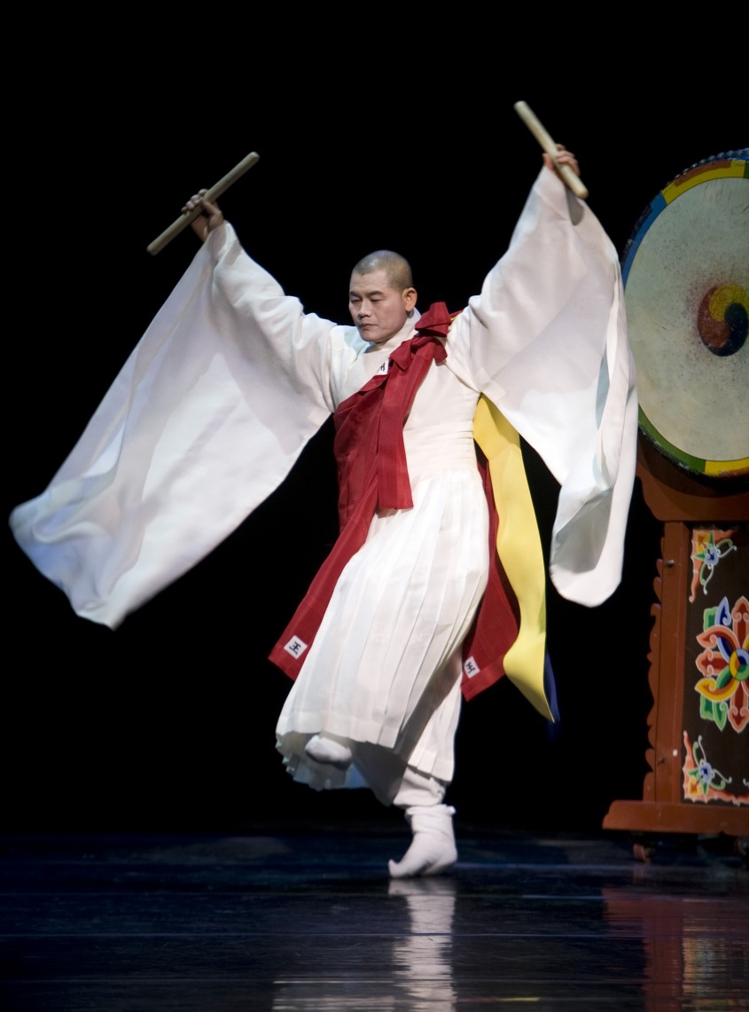 법현스님이영산재의식중바라춤을추고있다